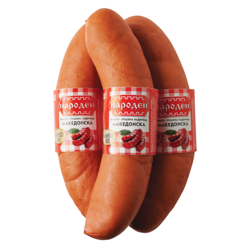 Съставки: механично отделено пилешко месо, сланина, кожна емулсия (свинска кожа, вода, сол, стабилизатори: дифосфати, полифосфати), вода, свинско месо, механично отделено свинско месо, картофено нишесте, сол, свински протеин, влакнини, СУРОВАТКА (ВКЛЮЧИТЕЛНО ЛАКТОЗА), овкусител: мононатриев глутамат, декстроза, малтодекстрин, стабилизатори: дифосфати, трифосфати, полифосфати, ензими (трансглутаминаза); антиоксидант: Е316; регулатор на киселиността: Е75, оцветител: кармини, нитритна сол (сол, консервант: натриев нитрит), ароматизант, ароматизант, подправки (ВКЛЮЧИТЕЛНО СИНАП).Пропеленти: азот, въглероден диоксид.