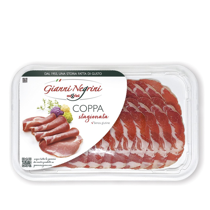 Копа - свински врат овкусен 33% (свински врат, сол, декстроза, подправки, ароматизанти, антиоксидант Е301 - натриев аскорбат, консерванти: Е252 - калиев нитрат, Е250 - натриев нитрит).