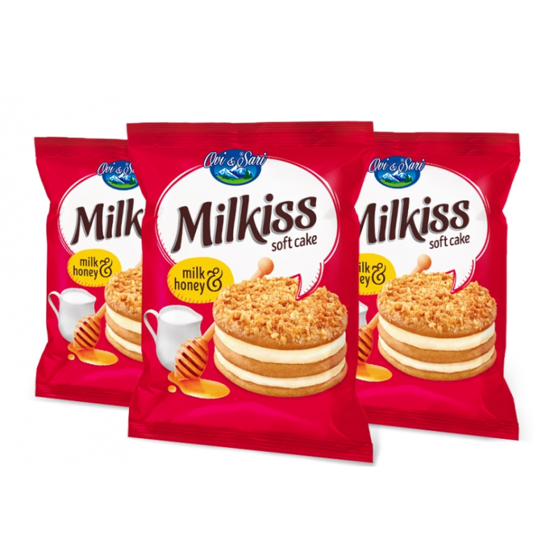 Съставки: Пълнеж 53%: захар, вода, обезмаслено мляко на прах, растителни мазнини и рафинирани масла: (палмово масло, натурално и хидрогенирано слънчогледово масло, вода, сол, емулгатори: моно- и диглицериди на мастни киселини, лецитин, регулатор на киселиност:лимонена киселина, ароматизант: масло,оцветител:бета- каротин), стабилизатори: натриева карбоксиметил целулоза, гума гуар, консервант: калиев сорбат, ароматизант: мляко и ванилия. Тесто 47%: пшенично брашно, захар, яйца кокоши, хидрогенирана палмова мазнина, пчелен мед 2% , глюкозо-фруктозен сироп, ябълков оцет (съдържа сулфити), набухвател: сода бикарбонат,влагозадържащ агент: глицерин, консервант: калциев пропионат, ароматизант: масло, регулатор на киселинност: лимонена киселина. Може да съдържа следи от фъстъци,ядки, соеви продукти.