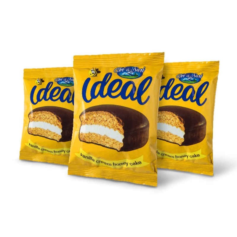 Съставки: Пълнеж 55%: захар, пшенично брашно, растителни мазнини и рафинирани масла: (палмово масло, натурално и хидрогенирано слънчогледово масло, вода, сол, емулгатори: моно- и диглицериди на мастни киселини, полисорбат 80, лецитин, регулатор на киселиност:лимонена киселина, ароматизант:масло,оцветител:бета- каротин), консервант:калиев сорбат, антиоксидант: витаоил, ароматизант: ванилия. Тесто 36%: пшенично брашно, захар, хидрогенирана палмова мазнина, кокоши яйца, пчелен мед 3%, глюкозо-фруктозен сироп, вода, ябълков оцет съдържа(сулфити), набухвател: сода бикарбонат, консервант: калиев сорбат, ароматизант: ванилия. Глазура 9%: пудра захар, хидрогенирано масло от палмови ядки със сорбитан тристеарат, какао на прах 10%, обезмаслено мляко на прах, емулгатори: слънчогледов лецитин, полиглицерол полирицинолеат; сол, консервант: калиев сорбат, ароматизант ванилия.