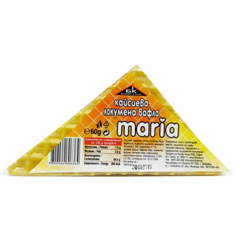 Състав: Локумена паста: питейна вода, фруктоза, пшеничено нишесте, лимонена киселина Е 330, оцветител Е 110, аромат кайсия. Вафлени кори: пшеничено брашно, питейна вода, рафинирано растително масло, набухватели: Е 503 и Е 500, готварска сол.