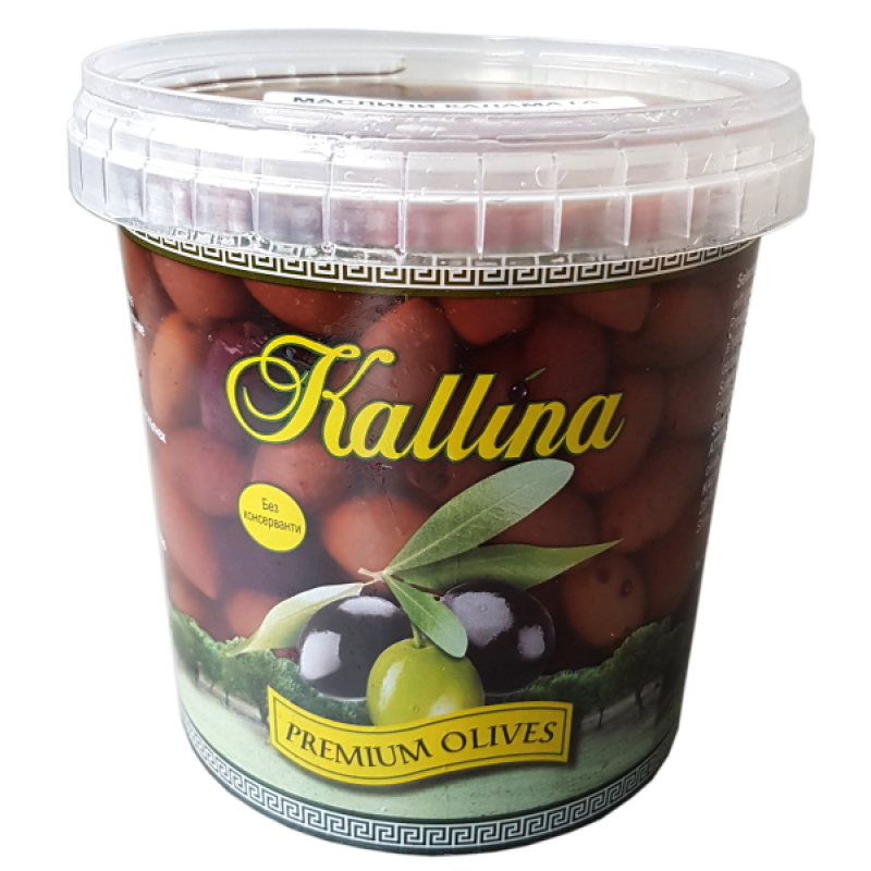 Състав: маслини Каламата (произход Гърция), вода, сол, млечна киселина, лимонена киселина.
