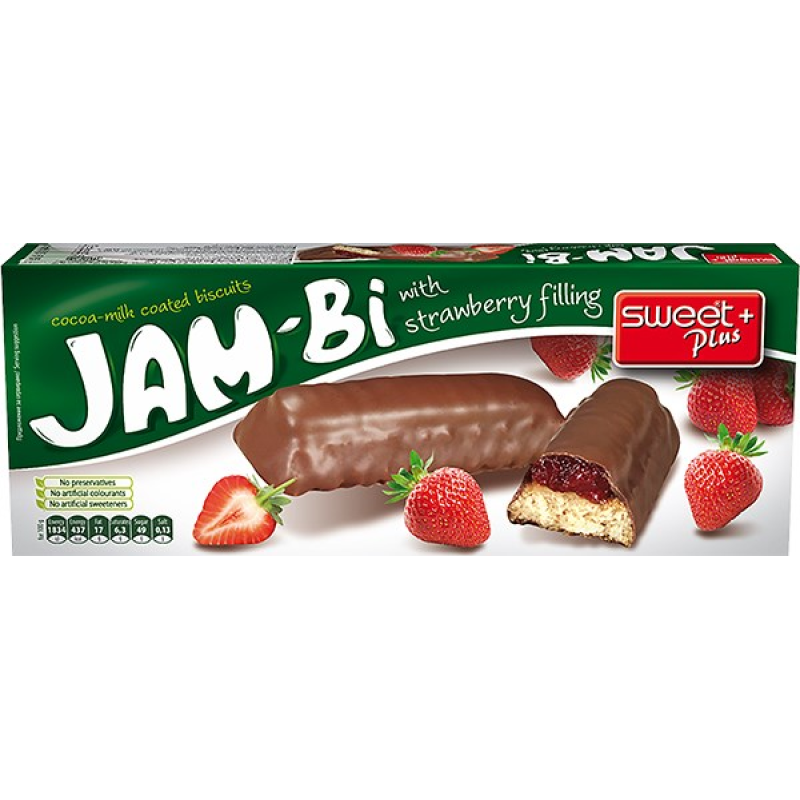 Съставки: Конфитюр ягода 32,9%, захар, пшенично брашно, растителна мазнина палмова, суха суроватка 7,4%, какао маса 4,4%, сироп от глюкоза, сухо пълномаслено мляко 1%, яйчен меланж, краве масло 0,4%, набухватели: амониев бикарбонат, натриев бикарбонат, емулгатор: E471, соев лецитин, Е476, ароматизант: ванилия. Може да съдържа фъстъци, ядки.