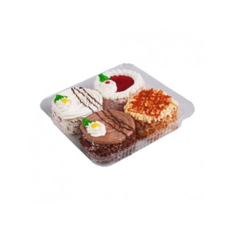 Съставки: Блат 50% (пшенично брашно, захар, сух яйчен меланж, растително олио, набухвател (бикпулвер), консервант(калиев сорбат), киселинен регулатор(лимонена киселина)). Крем 40% (захар, растителна палмова мазнина, пшенично нишесте, какао на прах, киселинен регулатор(лимонена киселина), оцветител(хлорофил)). Декорация 10% (захар, растителна палмова мазнина, емулгатор(соев лецитин), фъстъци, кокосови стърготини, какаови пръчици, фарситури(ягода, карамел, портокал), какао на прах).