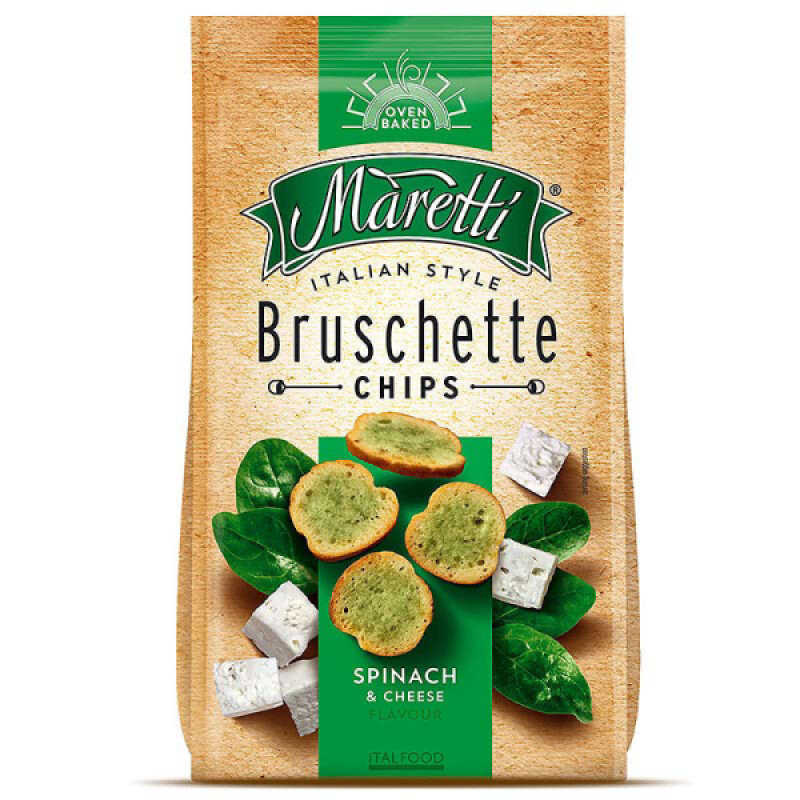 Съставки: пшенично брашно, растително масло (палмов олеин, антиоксидант: розмаринов екстракт), царевичен екструдат, подправка Спанак и сирене 5.5% (царевично нишесте, сол, декстроза, малтодекстрин, спанак на прах 12%, лук на прах, чесън на прах; овкусители: натриев глутамат, натриев гуанилат, натриев инозинат; сух магданоз, сирене на прах 1%, ароматизанти), сол, обезмаслено мляко на прах, захар, сух глутен, мая, стабилизатор: гума гуар; декстроза, емулгатор: естери на моно- и диацетилна винена киселина с моно- и диглицериди на мастни киселини.