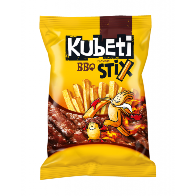 Съставки: дехидратирани картофи 35%, картофено нишесте, сол, растителен екстракт куркума, растително масло: палмов олеин; подправка Барбекю 6% (малтодекстрин, нишесте, сол, захар овкусители: натриев глутамат, динатриев 5’-рибонуклеотид; декстроза сухи подправки: лук, черен пипер; регулатори на киселинност: натриев ацетат, лимонена киселина; захар, антислепващ агент: силициев диоксид; оцветител: паприка екстракт; ароматизанти, пушилен ароматизант). Може да съдържа следи от пшеница, млечни и соеви продукти.