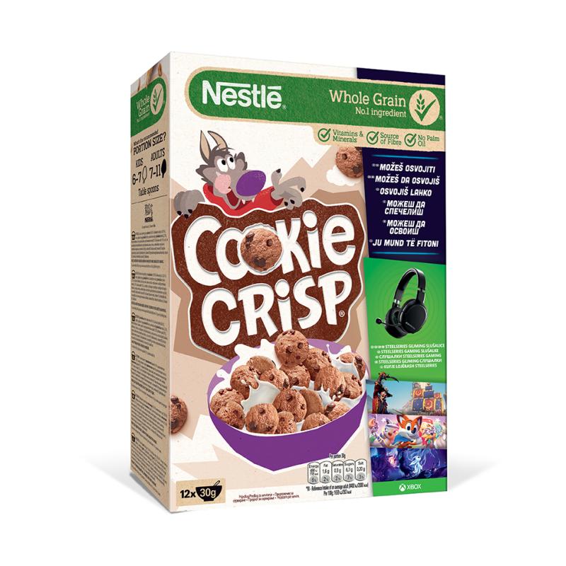 Съставки: Пълнозърнестo пшенично брашно 34.2% (съдържа глутен), царевичен грис 28.2%), захар, глюкозен сироп, пшеничен чипс с шоколадов вкус 5.3% (пшенично брашно 2.8% (съдържа глутен), захар, какао на прах 1.0%, слънчогледово масло, царевично нишесте), пшенично нишесте (съдържа глутен), кафява захар, палмово масло,витамини (никотинамид, калциев D- пантотенат, рибофлавин, пиридоксин хидрохлорид, тиамин хидрохлорид, птероилмоноглутаминова киселина, холекалциферол), минерали (калциев карбонат и елементарно желязо), нискомаслено какао на прах 1.2 %, сол, аромат: какаов, набухвател: натриев бикарбонат, регулатор на киселинността: тринатриев фосфат.