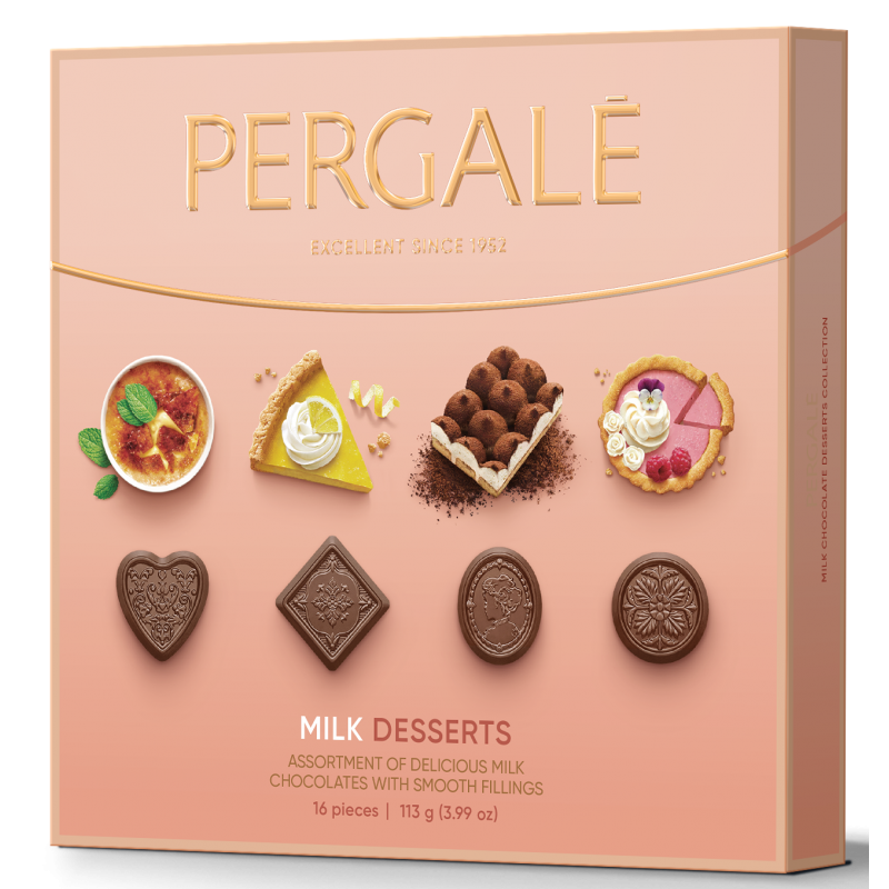 Състав: Млечен шоколад 58% (захар, пълномаслено мляко на прах, какаово масло, какаова маса, растителни мазнини: сол, палмова, ший; обезмаслено мляко на прах, емулсатори: соев лецитин, полиглицерол, полирицинолеат,ароматизатор), захар, обезмаслено мляко и млечна суроватка на прах, смес от млечна суроватка, нискомаслено какао на прах, емулгатори: естери на лимонена киселина на моно- и диглецириди на мастните киселини, ароматизанти. Може да съдържа фъстъци, бадеми, кашу, глутен, яйца и други ядки.