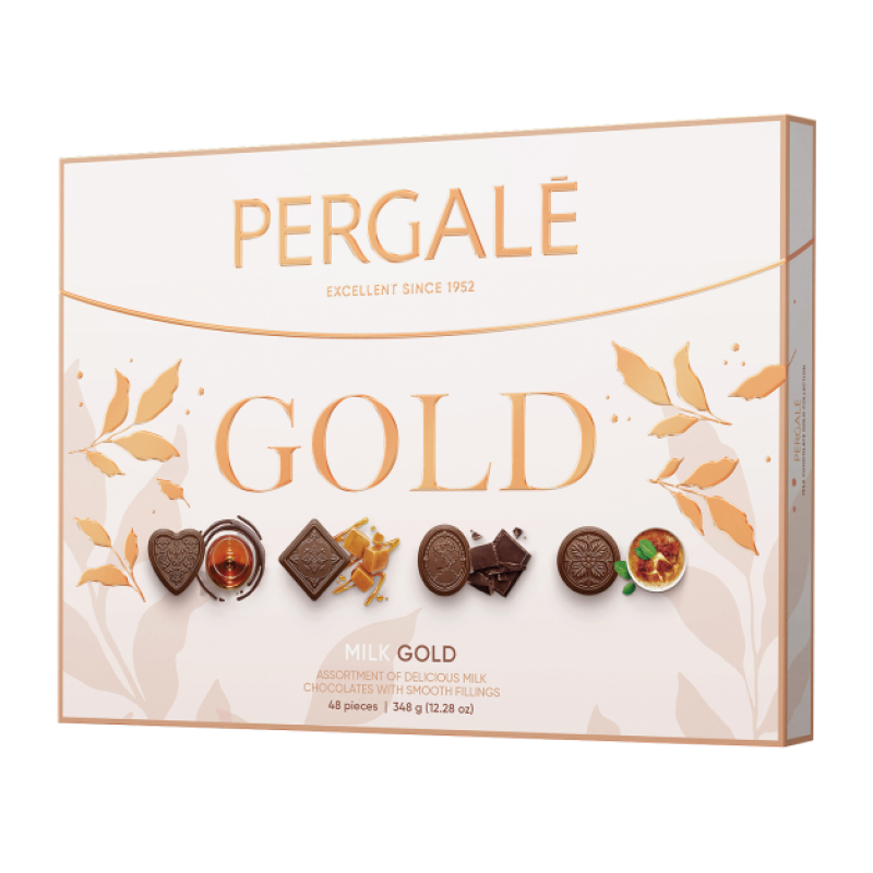 Описание: Бонбони с пълнеж: с шоколадов мус 11%; бренди пълнеж 11%, карамелов пълнеж 11%, с вкус на крем брюле 11%.
