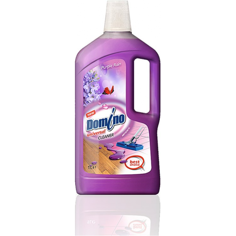 Домино Универсал е течен нископенещ се препарат за ежедневно почистване на теракот, мрамор, ламинирани паркети, твърди подови настилки, дограми, кухненски плотове, метални и дървени повърхности. Препаратът създава защитен филм, който предпазва твърдите повърхности от надраскване, без да оставя следи по пода. След употреба помещенията са чисти, с приятен и дълготраен аромат.