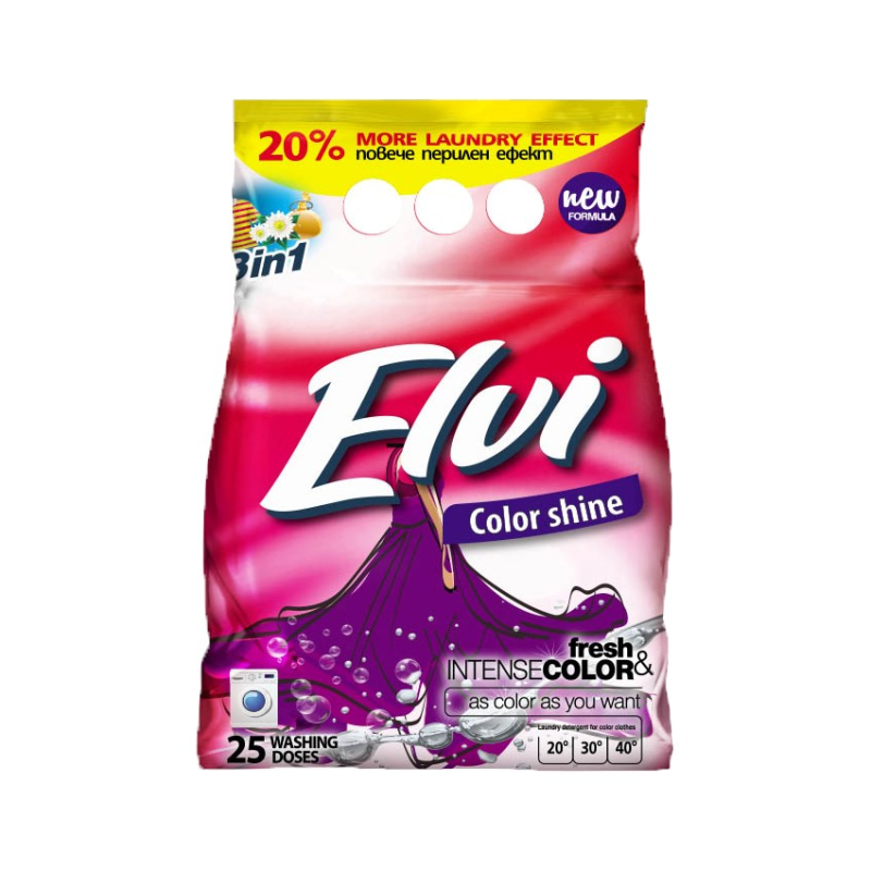 Elvi Fresh and Color е перилен препарат за цветно пране за автоматични перални машини и ръчно пране.