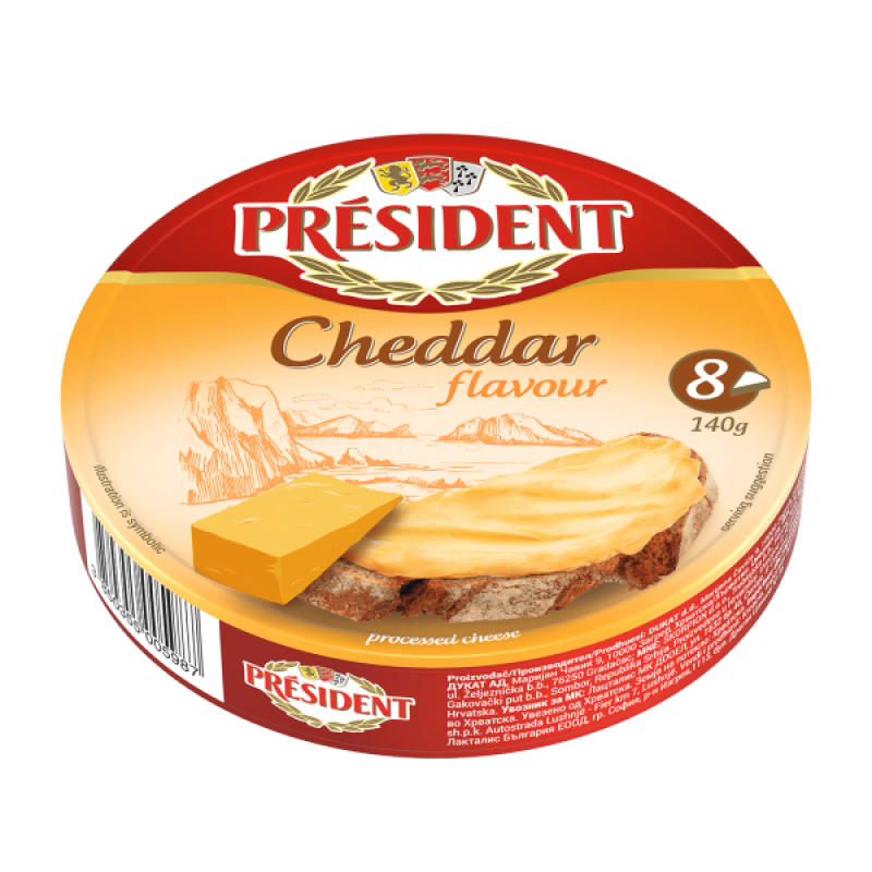 За любителите на по-нестандартните вкусове представяме Топеното сирене PRESIDENT Чедър. С приятно изразен вкус на познаното ни сирене чедър и с гладка текстура, продуктът е идеален за намазване и за приготвянето на разядки и сосове.