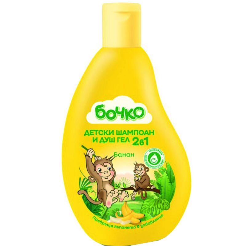 Веднага след като проходят, мъниците стават истински изследователи. А всяка мама знае на какво са способни малките палавници в банята. Бочко е готов да помага със забавен цветен комбиниран шампоан с така харесвания от момчетата аромат на банан.С нежно почистващо действие и с омекотяващи съставки, шампоанът 2в1 Бочко дава решение за едновременно измиване на косата и тялото. Билковите екстракти и включените витамини осигуряват допълнителна грижа за детската кожа. Прави мека и пухкава пяна. Веселият цвят и свежият плодов аромат превръщат къпането в истинско забавление. Подходящ както за къпане във ваничка, така и под душа.