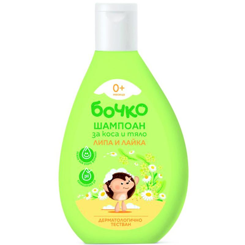 Бебешкият шампоан Бочко е с нежна към очите формула. Деликатно измива косата и почиства кожата на бебето. Чистата формула на шампоана Бочко е без дразнещи съставки (SLES), с хипоалергенен аромат и прави фина и мека пяна. Подходящ за бебето още от първия му ден. Съставки: Aqua, Lauryl Glucоside, Cocamidopropyl Betaine, Chamomilla Recutita Flower Extract, Tilia Tomentosa Extract, Citric Acid, Sodium Benzoate, Potassium Sorbate, Parfum, Trisodium Ethylenediamine Disuccinate.