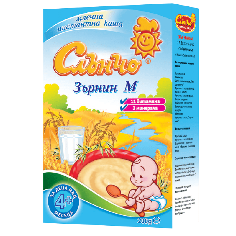 Съставки:сухо пълномаслено мляко (30%), захар, оризово брашно (15,2%), пшенично брашно(11,3%), био овесено брашно* (10,4%), суха сладка суроватка,витаминно – минерална смес ((Витамин А (ретинил ацетат), Витамин D3 (холекалциферол), Витамин Е (алфа токоферол ацетат), Витамин С (L-аскорбинова киселина), Витамин В1 (тиамин мононитрат), Витамин В2 (рибофлавин), Ниацин (никотинамид), Витамин В6 (пиридоксин хидрохлорид), Витамин В9 (фолиева киселина), Витамин В12 (цианокобаламин), Пантотенова киселина (калциев D-пантотенат), Желязо (железен пирофосфат), Цинк (цинков сулфат), Йод (калиев йодид)).