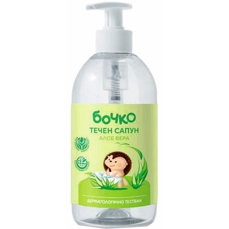 Нежната формула на течен сапун Бочко почиства кожата и я оставя мека и защитена благодарение на вложеният екстракт от Алое Вера. С активна измиваща формула и с добавен глицерин, кожата остава чиста, мека и запазва своя воден баланс. Със специално подбран, хипоалергенен аромат и с биоразградими активни съставки, течният сапун Бочко е подходящ за често измиване на чувствителна и склонна към алергии кожа.