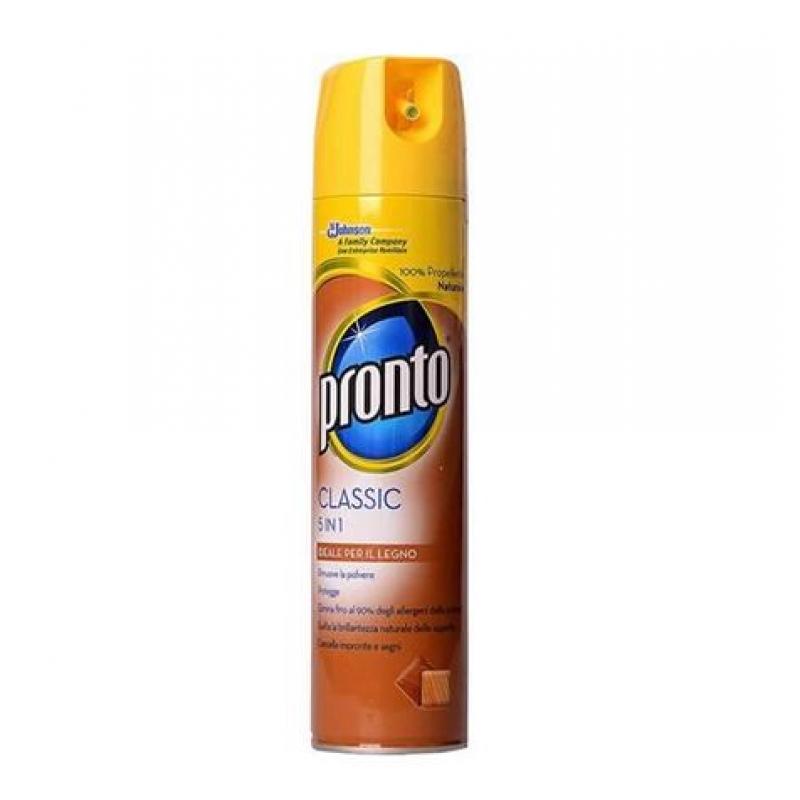 Единственият почистващ препарат за мебели с компресиран въздух. С намалено вредно въздействие върху околната среда. Този продукт има намалено съдържание на летливи органични съставки, които допринасят за замърсяването на атмосферата. Пронто Класик почиства, възстановява и защитава дървените повърхности с всяко почистване