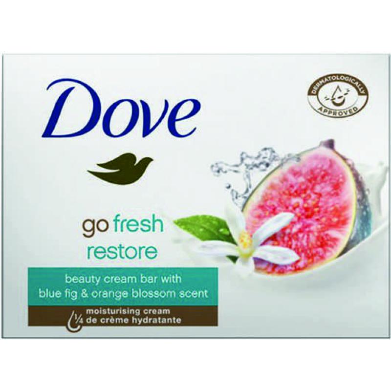 Dove Go Fresh Restore Beauty Cream bar with blue fig & orange blossom scent e крем-сапун за ръце, лице и тяло с овлажняващо и подхранващо действие. Дав Овлажняващ крем-сапун за ръце, лице и тяло с екстракт от синя смокиня и портокалов цвят е обогатен с екстракт от синя смокиня, портокалов цвят и ? овлажняващ крем. Благодарение на меките почистващи съставки, кожата запазва влажността си. Нежната и деликатна текстура на сапуна почиства, подхранва и хидратира кожата, като я оставя по-мека, по-гладка, по-сияйна и ухаеща на свежест и чистота. Подходящ за всекидневна употреба. Без парабени. Дерматологично тестван продукт.