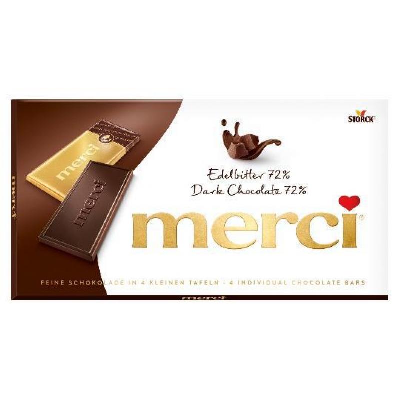 Съставки: захар, какаова маса, каково масло, емулгатор, екстракт от ванилия. Какао 72% минимум в шоколада. Може да съдържа и частици от лешник, бадем, фъстък и други ядки.