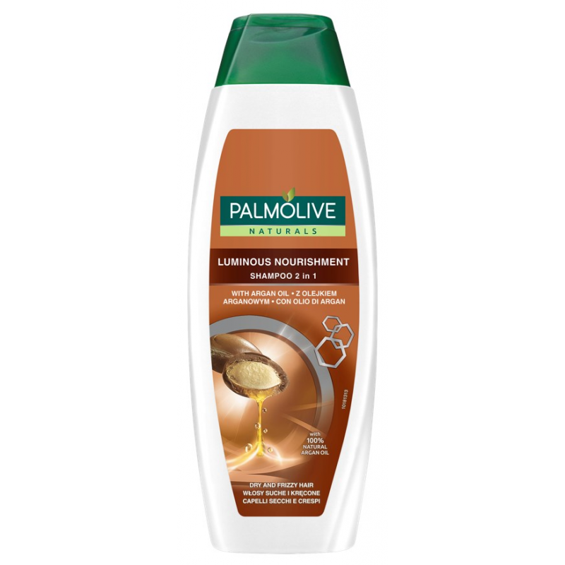 Шампоанът на "Palmolive" е специално разработен да заздрави сухата коса и да укроти къдриците. Той действа и като балсам, защото омекотява и подхранва косъма. Формулата му съдържа 100% натурален екстракт от арганово масло, който притежава дълбоко овлажняващи свойства. Арганът заздравява косъма и го предпазва от цъфтене и накъсване. Кремообразната текстура на шампоана от серията "Naturals" се превръща в нежна пяна, която почиства ефикасно скалпа и косата от замърсявания. След редовна употреба, тя придобива по-гладък, бляскав и еластичен вид.