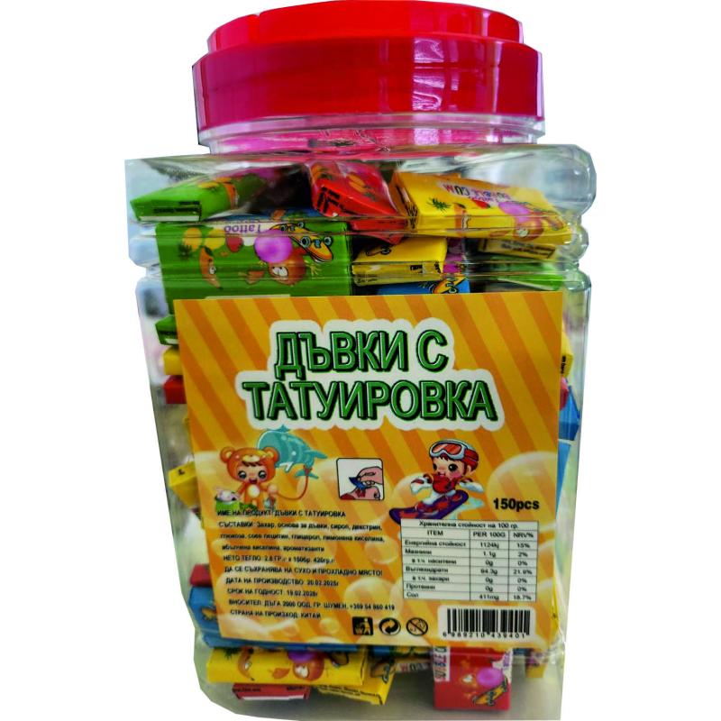 Съатав:захар,основа за дъвки,сироп,декстрин,глюкоза,соев лецитин,глицерол,лимонена киселина,ябълчена киселина.ароматизанти.