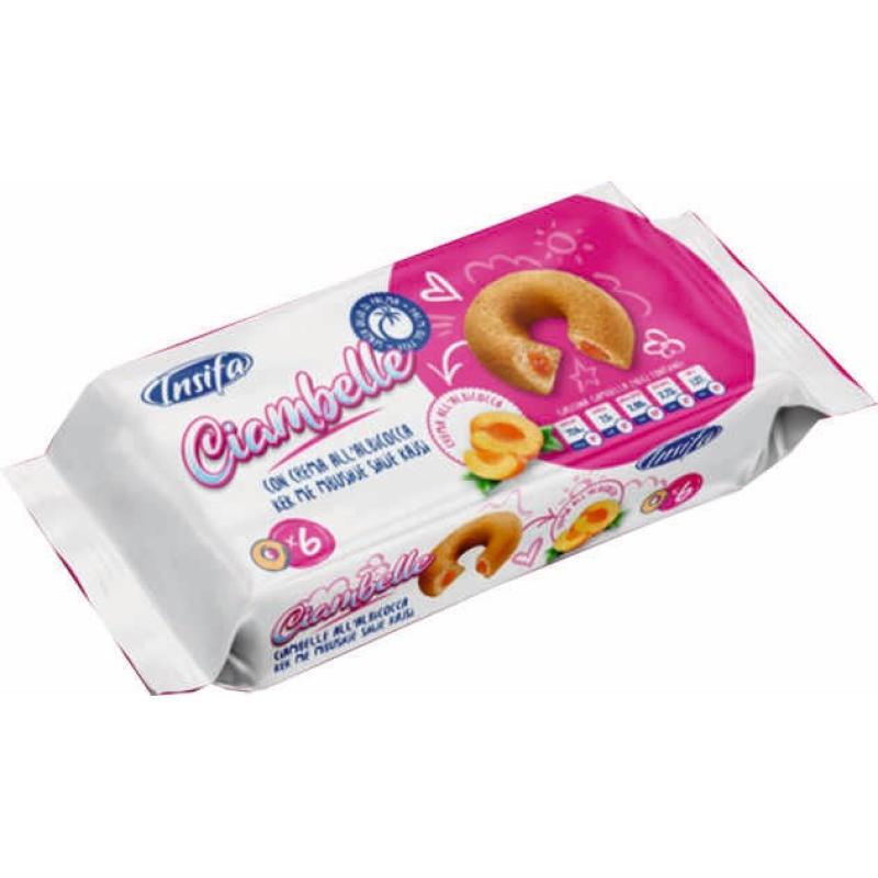 Торта Чаамбел с пълнеж от кайсиев сироп Състав - пшенично брашно , захар , пастьоризирани яйца , слунчогледово масло , глюкозен сироп , прежелатинизирано пшенично и царевично нишесте , влагозадържащ агент , сол ,ароматизант - ванилин , кайсия , полиглицеролови естери на растителни мастни киселини , набухватели , обезмаслено мляко на прах .