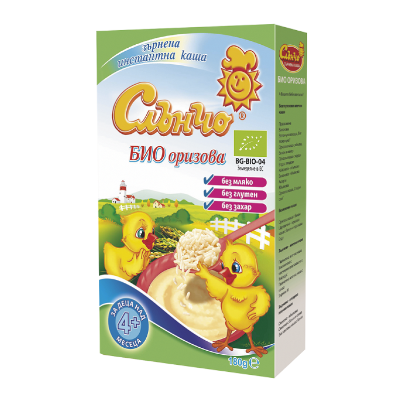 • СЛЪНЧО КАША 0.180 БЕЗМЛЕЧНА ОРИЗОВА БИО 4+М