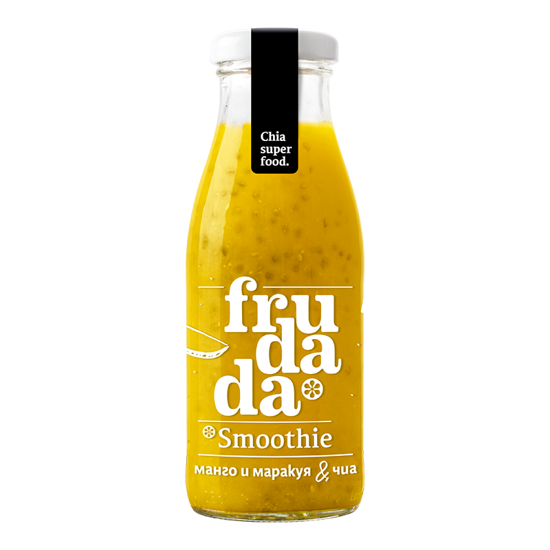 Съставки: прясно пресовани сок от ябълка, сок от портокал, пюре от манго - 8%, пюре от праскова, сок от маракуя - 5%, чиа семена - 4%, сок от лимон