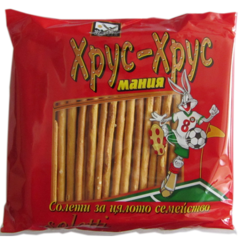Съставки: пшенично брашно т.700 - 62,2%, растително масло (палмово), сол йодирана, мая хлебна пресована, емулгатор – слънчогледов лецитин, набухвател – амониев хидрогенкарбонат, глазиращ агент – натриев хидроксид, вода.