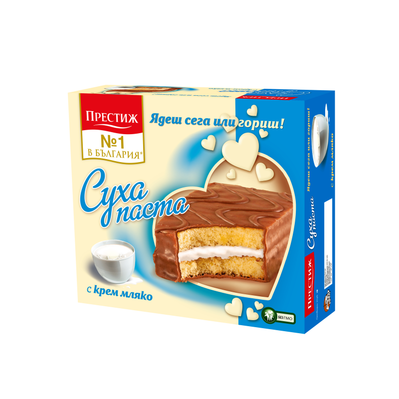 Съставки: захар, питейна вода, пшенично брашно, сироп от глюкоза, частично хидрогенирани растителни мазнини (мазнини- палмова, соева, рапична, слъчногледова, емулгатори- сорбитан, тристеарат, соев лецитин), нехидрогенирани растителни мазнини (мазнини-палмова, ший, емулгатори - моно и диглицериди на мастни киселини, соев лецитин, ароматизант), суроватка на прах, влагозадържащи агенти (глицерин, сорбитол), пастьоризиран яйчен меланж, обезмаслено мляко на прах-1,6%, царевични нушесте, какао на прах с намалено маслено съдържание, набухватели (натриев бикарбонат, натриев кисел пирофосфат, монокалциев фосфат), сол, етанол, оцветител (бета каротин), емулгатори (рапичен лецитин, моно- и диглицериди на мастни киселини, полиглицерол полирицинолеат, гума ксантан), регулатор на киселинността (лимонена киселина)