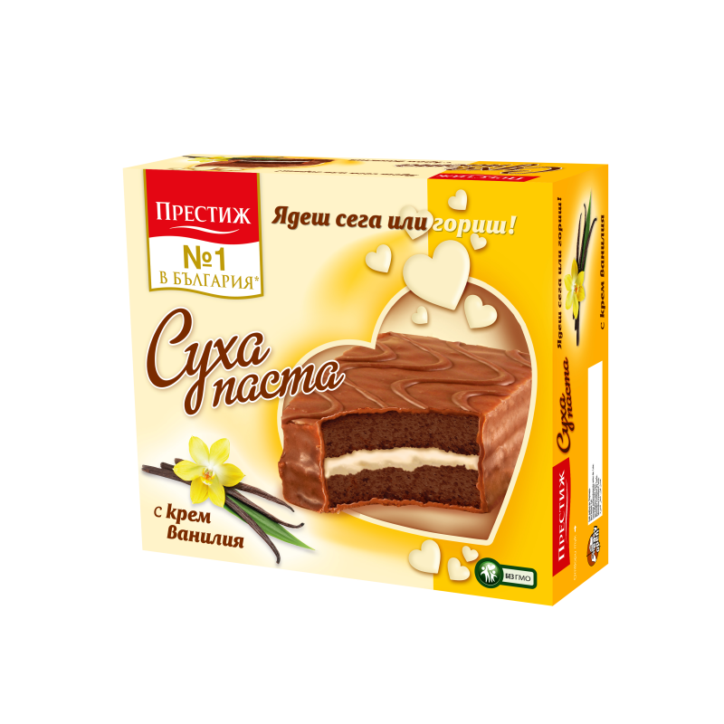 Съставки: захар, питейна вода, пшенично брашно, сироп от глюкоза, частично хидрогенирани растителни мазнини (мазнини- палмова, соева, рапична, слъчногледова, емулгатори- сорбитан, тристеарат, соев лецитин), нехидрогенирани растителни мазнини (мазнини-палмова, ший, емулгатори - моно и диглицериди на мастни киселини, соев лецитин, ароматизант), суроватка на прах, влагозадържащи агенти (глицерин, сорбитол), пастьоризиран яйчен меланж, обезмаслено мляко на прах-1,6%, царевични нушесте, какао на прах с намалено маслено съдържание, набухватели (натриев бикарбонат, натриев кисел пирофосфат, монокалциев фосфат), сол, етанол, оцветител (бета каротин), емулгатори (рапичен лецитин, моно- и диглицериди на мастни киселини, полиглицерол полирицинолеат, гума ксантан), регулатор на киселинността (лимонена киселина)