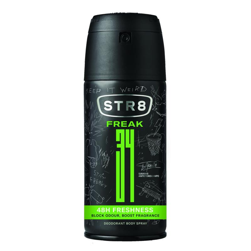 Съставки:Alcohol Denat., Butane, Isobutane, Propane, Isopropyl Palmitate, Parfum, Ethylhexylglycerin, Pentylene Glycol, Triethyl Citrate, BHT, Alpha-Isomethyl Ionone, Citral, Citronellol, Coumarin, Geraniol, Limonene, Linalool.Део спрей STR8 FREAK дава усещане за свежест до 48 часа и уникален аромат благодарение на своите подправъчни и дървесни нотки. Идеалният спрей за тяло за мъже, които търсят дълготрайна защита в съчетание с очароващ и елегантен аромат.