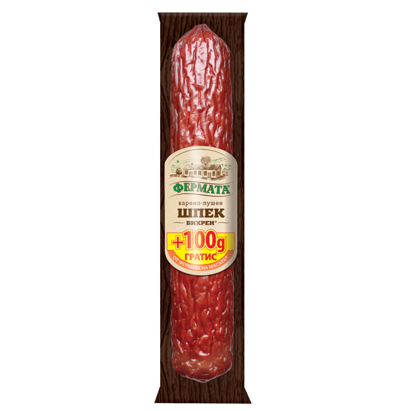 Съставки: механично отделено пилешко месо, сланина, свински сърца, вода, механично отделено пуешко месо, нишесте, СОЕВ ПРОТЕИН, кожна емулсия (свински кожи, вода, сол, стабилизатори: дифосфати, полифосфати), сол, декстроза, антиоксиданти: аскорбинова киселина, Е316, стабилизатори: дифосфати, трифосфати, полифосфати, регулатор на киселинността: Е575, оцветител: кармини, овкусител: Е621, консервант: Е250, антислепващ агент: Е551, ароматизанти, чесън, подправки, СЪДЪРЖА СИНАП.