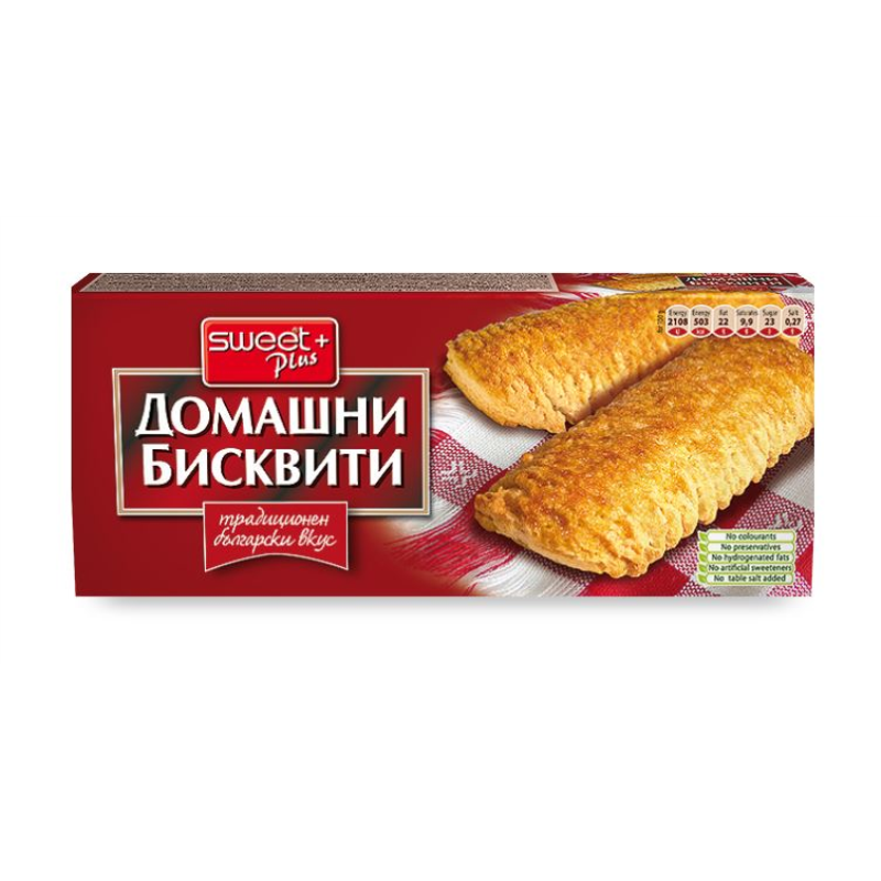 Съставки: Пшенично брашно, захар, растителна мазнина палмова, царевично нишесте, яйчен меланж, суха суроватка, декстроза, сухо пълномаслено мляко, набухватели: амониев бикарбонат, натриев бикарбонат, натриев кисел пирофосфат, соево брашно, емулгатор: Е471, ароматизант: лимон, киселина: лимонена. Може да съдържа фъстъци, ядки, соев лецитин.