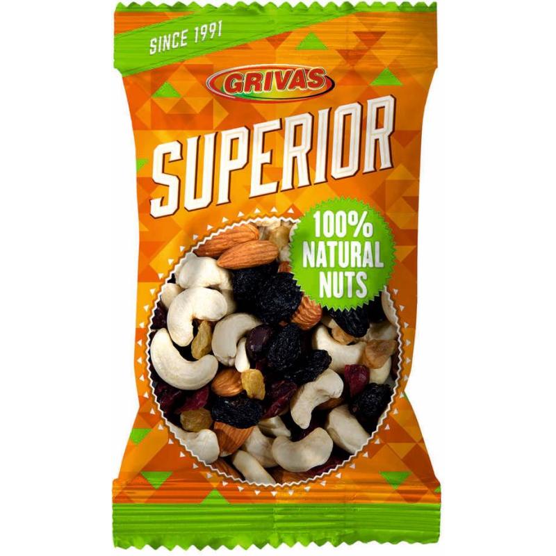 Състав:сурови ядки и сушени плодове в променливо съотношение-сушени червени боровинки(червени боровинки,тръстикова захар,слънчогледово олио),бадем,кашу,лешник