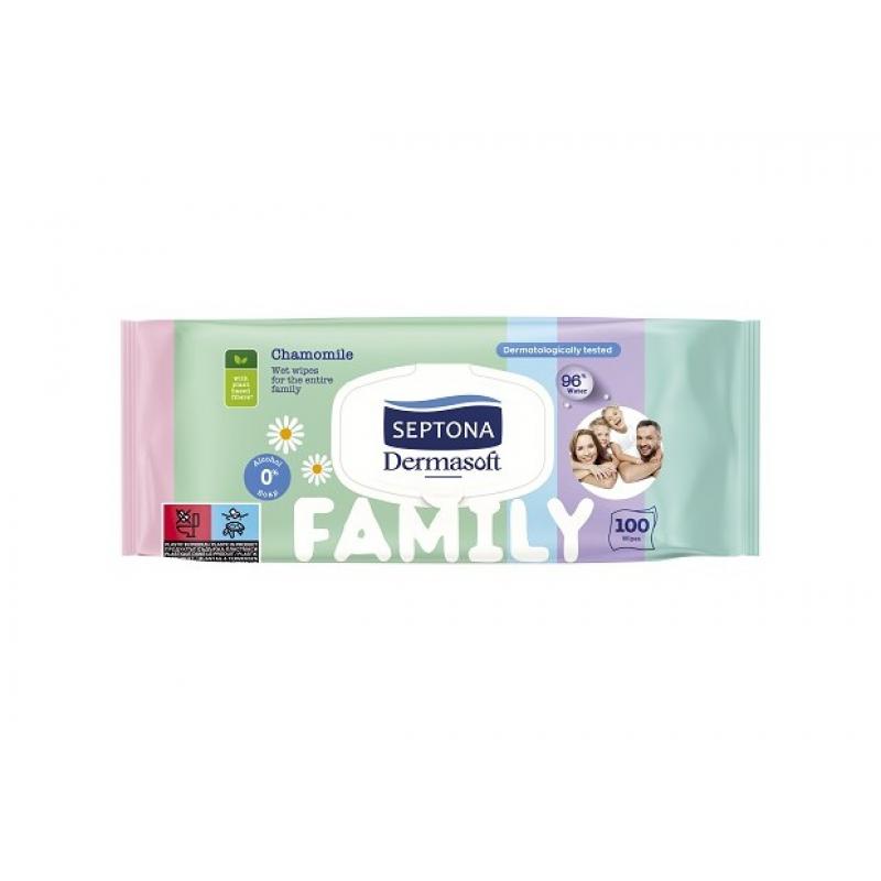 СЕПТОНА DERMASOFT МОКРИ ПОЧИСТВАЩИ КЪРПИ ЗА ЦЯЛОТО СЕМЕЙСТВО FAMILY 100бр С КАПАК