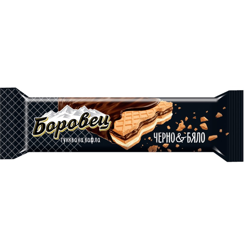 Съставки: какаова глазура 36% [растително частично хидрогенирано масло (палмово), захар, декстроза, суроватка на прах, суроватъчен пермеат, какао на прах с намалено маслено съдържание 3%, емулгатор: соев лецитин, ароматизант: ванилин], какаов крем 26% [растително масло (палмово), захар, суроватка на прах, малтодекстрин, суроватъчен пермеат, декстроза, какао на прах с намалено маслено съдържание 4%, какао маса 2%, ароматизант), ванилов крем 26% [растително масло (палмово), захар, суроватка на прах, малтодекстрин, декстроза, суроватъчен пермеат, ароматизанти), пшенично брашно, картофено нишесте, слънчогледово олио, емулгатор: соев лецитин, набухвател: натриев хидроген карбонат, сол.