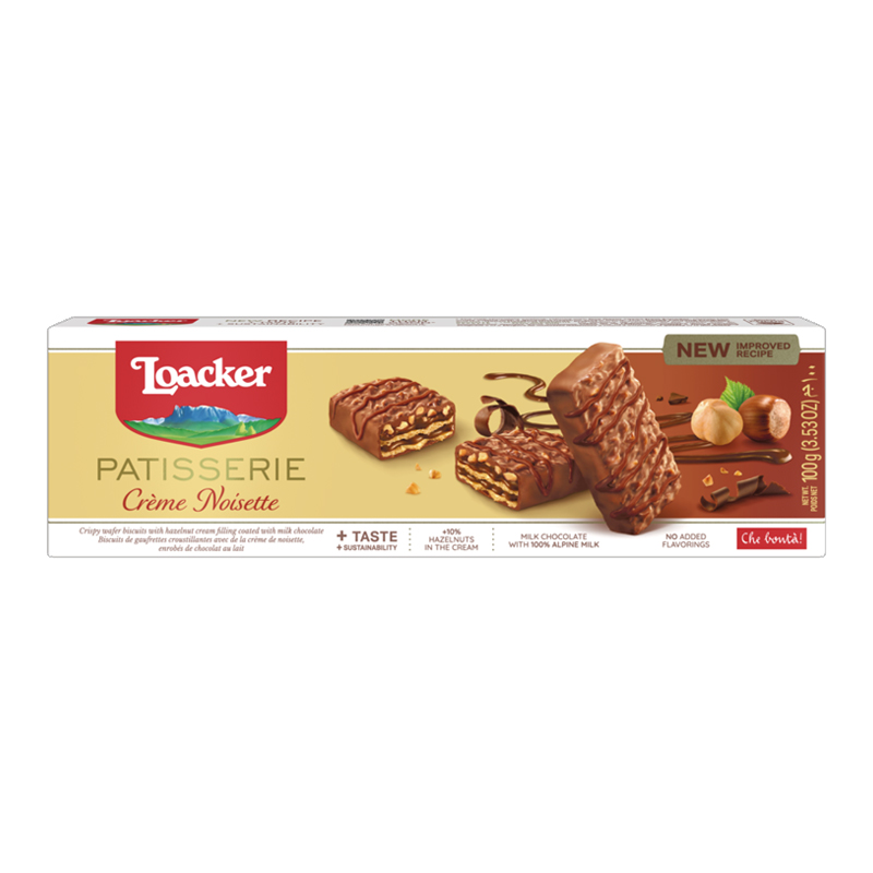Съставки: Млечен шоколад 35% (захар, какаово масло, пълномаслено мляко на прах, какаова маса, обезмаслено мляко на прах, емулгатор соев лецитин), кокосово масло, лешници 13%, сироп от глюкоза, пшеничено брашно, захар, суроватка на прах (млечна), обезмаслено мляко на прах, соево брашно, какао с намалено съдържание на мазнини, декстроза, екстракт от ечемичен малц, набухватели (натриев хидрогенкарбонат, динатриев дифосфат), сол, емулгатор соев лецитин, Бурбонски ванилени шушулки, подправки.