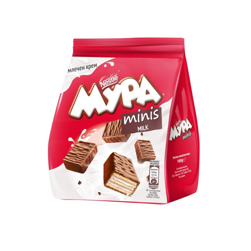 Съставки: млечен шоколад 36% (захар, какаово масло, какаова маса, пълномаслено мляко на прах, суроватка на прах, растителни мазнини (палмова, ший), нискомаслено какао на прах, емулгатори (лецитини, полиглицерол полирицинолеат), пшеничено брашно, палмово масло, захар, обезмаслено мляко на прах 5,6%, суроватка на прах, малтодекстрин, пълномаслено мляко на прах 3,2%, пшеничено нишесте, емулгатор (лецитини), сол, набухвател (натриеви карбонати).