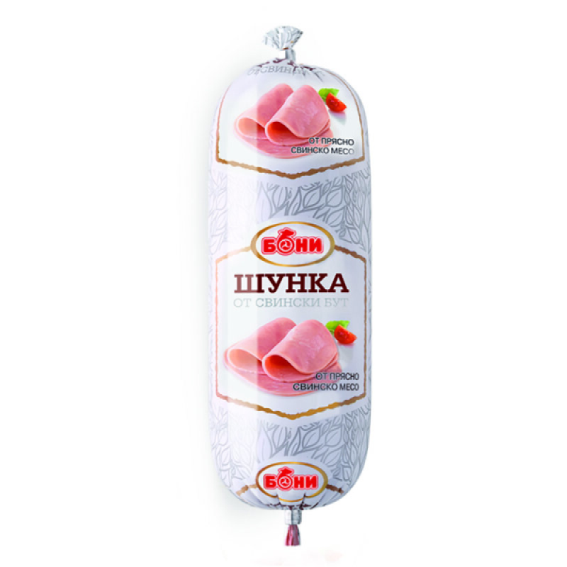 Съставки: свинско месо, картофено нишесте, нитритна сол (трапезна сол, консервант: натриев нитрит), СОЕВ ПРОТЕИН, декстроза, стабилизатори: трифосфати, карагенан, малтодекстрин, подправъчни есенции, овкусител: мононатриев глутамат, антиоксиданти: изоаскорбинова киселина и натриев ериторбат, оцветител: кармини. Обвивката на колбаса не е ядивна.
