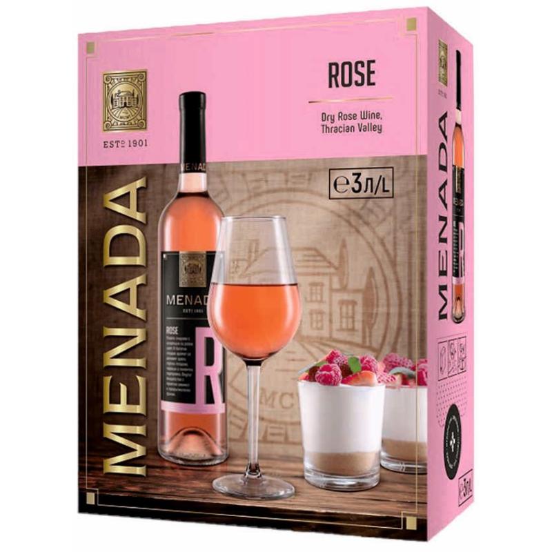 Розе Менада е българско сухо вино розе, което впечатлява с искрящ розов цвят и богат плодов аромат. Вкусът на розе Менада въздейства със своята приятна свежест и продължителен финал.