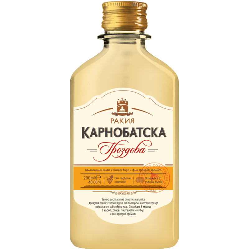 Тайната на неустоимия й вкус се крие в прецизната селекция и великолепното съчетание на аромати. За производството й се използва специално подбрано грозде, събрало в зърната си слънцето на лятото и сладостта на есента. Студената ферментация на плода гарантира максимално запазване на неговите уникални аромати и позволява по-късното им вплитане в палитра от вкусове, които завладяват сетивата. Стриктната дестилация под непрекъснат контрол гарантира постоянното високо качество на Карнобатска гроздова. Кехлибарената течност отлежава в 500-литрови бъчви, направени от специално подбрана дървесина от Странджанския край.