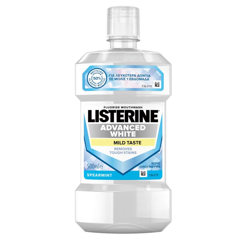 LISTERINE ADVANCED WHITE ИМА УНИКАЛНА ФОРМУЛА С НЯКОЛКО ДЕЙСТВИЯ: