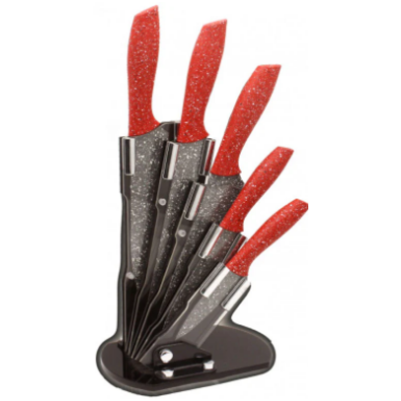 НОЖ 5БР.+ПОСТАВКА МРАМ.ЧЕРВЕНО ZP 1633 ES5AS