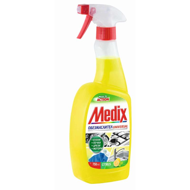 <5% Анионни Пав, <5% Нейоногенни Пав, Фосфати, Парфюм, Edta, Limonene, Citronellol.Концентриран обезмаслител Medix Multi Action е с мощно действие и свеж цитрусов аромат. С мултифункционално приложение, като едновременно е безопасен за тъканите и повърхностите. Почиства до блясък, като премахва без никакво усилие мазнини от различни повърхности в кухнята и градината и дори петна по тъкани.