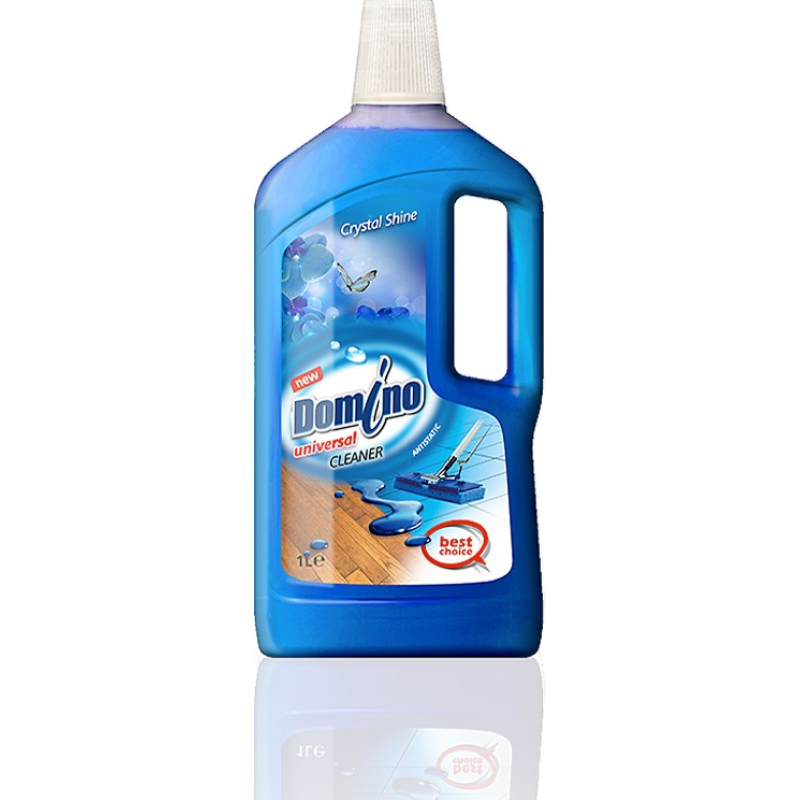 Домино Универсал е течен нископенещ се препарат за ежедневно почистване на теракот, мрамор, ламинирани паркети, твърди подови настилки, дограми, кухненски плотове, метални и дървени повърхности. Препаратът създава защитен филм, който предпазва твърдите повърхности от надраскване, без да оставя следи по пода. След употреба помещенията са чисти, с приятен и дълготраен аромат.