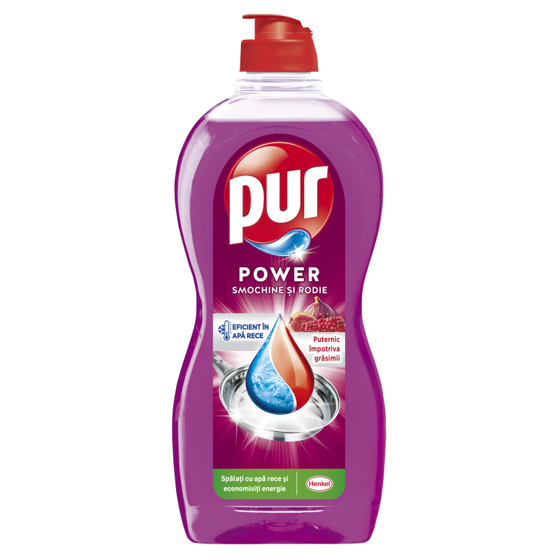 Pur Power Gel представлява мощен препарат за миене на съдове, който перфектно отстранява дори и най-силно замърсените повърхности, като същевременно е изключително щадящ и деликатен към кожата на ръцете и ноктите Ви. Иновативната формула на продукта е с обезмасляващ ефект, тя бързо разтваря мазнините и осигурява гарантирано чисти и блестящи домакински съдове, без нуждата от интензивно търкане. Pur Power Gel е със свеж аромат на сочна смокиня и нотки нар.