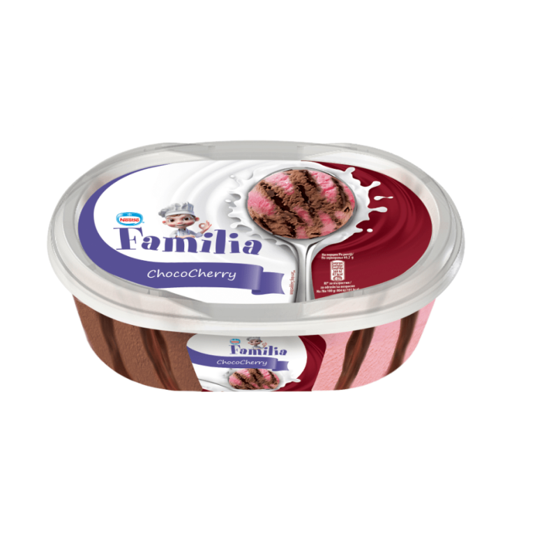 Съставки: възстановено обезмаслено мляко 35%, вода, захар, кокосово масло, суроватка на прах, глюкозен сироп, глюкоза (декстроза), глюкозен сироп на прах, какао на прах 1,7%, нискомаслено какао на прах 1,5%, емулгатори (моно- и диглицериди на мастни киселини), концентрат от сок на червено цвекло, стабилизатори (гума гуар, гума локуст бийн, преработени "Euchema" водорасли, гума ксантан), оцветители (карамел (амониев сулфит), бета - каротин), аромати (череша), киселина (лимонена киселина).
