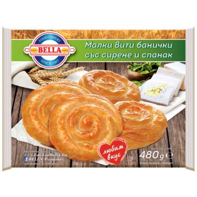 Пълнеж (35%): спанак (31%), извара (27%), вода, сирене от краве мляко (6%)[пастьоризирано краве мляко, сол, закваска, втвърдител: калциев хлорид; сирищен ензим], праз, пшеничен грис, яйчен прах, нишесте, лук, стабилизатори: целулоза, Е 466; млечен протеин, сол, рафиниранo слънчогледово масло, ароматизант сирене (0.1%).